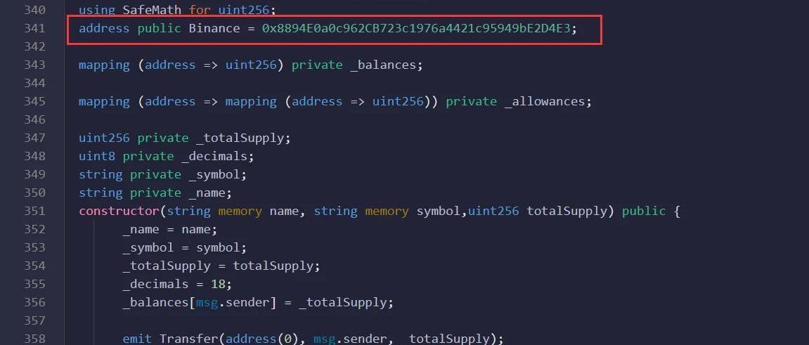 查看交易信息,發現這里的from地址并不是攻擊者的地址0x95E2Ea34dEB5C0954B91a47f459770D20568A15B,而是Binance:HotWallet6的地址0x8894E0a0c962CB723c1976a4421c95949bE2D4E3。