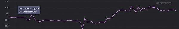 市場概況:本周NFT藍籌指數相比上周有小幅上漲,截止12月23日,市場總體來看有所回溫,但是nft市場還在一個熊市的冰點,nft藍籌指數在周中有所上升,總體但沒有出現大幅度變化,市場還處在恢復期。