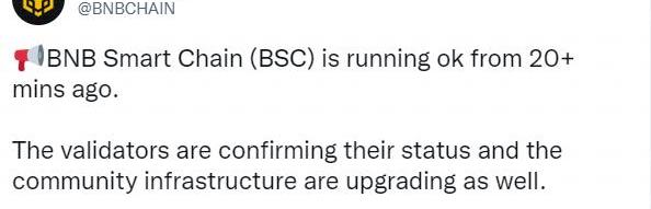 下午三點左右,BNBChain發推稱,BNB智能鏈20多分鐘前開始良好運行。驗證者正在確認他們的狀態,社區基礎設施也在升級。此外,BscScan數據顯示,BNBChain網絡已恢復出塊。