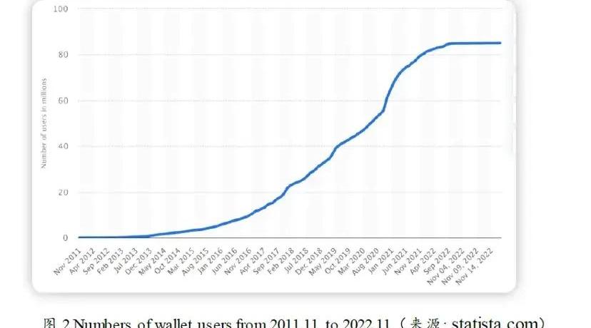 從用戶數量上來看,目前全球有超過3億人在使用加密資產,從來自statista.com的數據顯示,截至2022年11月,全球錢包用戶數量為85M,較2021年年底80M增加約6.3%,相對于上一年增幅35%有所下降,但隨著熊市結束下一個周期的到來,目前正處于爆發增長的前夜。