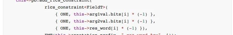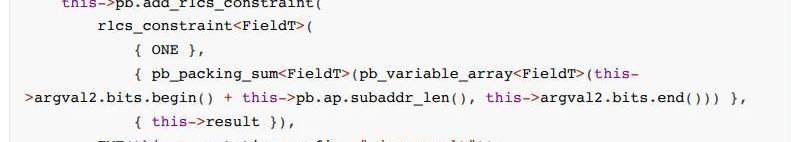 當然除了上述提到的一些指令相關的約束外,tinyram還有一些pc一致性、參數編解碼、內存檢查等各種約束。這些約束通過R1CS系統組合起來構成一個完成的tinyram約束系統。所以這也是R1CS形式的tinyram生成約束數量較多的根本原因。