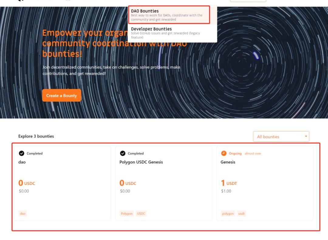 6)首發過后,bounty可能還有剩余,因此可以登錄https://dorahacks.io/zh/daobounty,尋找空余且想參與的bounty。