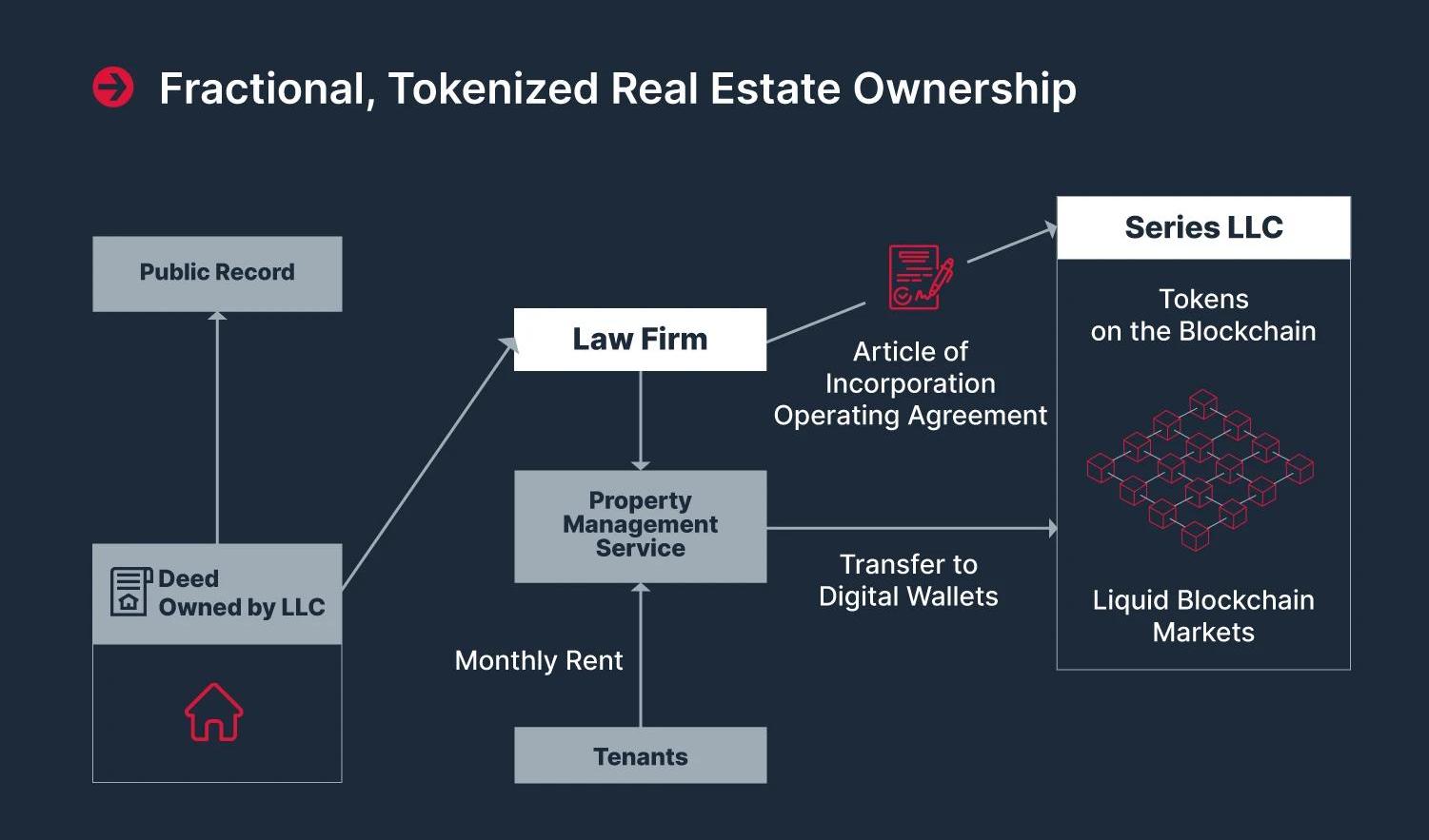 實體房地產由“SeriesLLC”擁有,同一實體在區塊鏈上鑄造通證,供散戶投資者在二級市場進行交易。