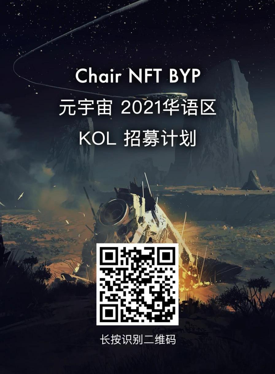 為共建華語粉絲社區,推動NFT2.0進程,ChairNFT現計劃面向華語區塊鏈社群主,自媒體大V、KOL、行業媒體專欄作者以及NFT和元宇宙愛好者等,招募KOL合作伙伴。