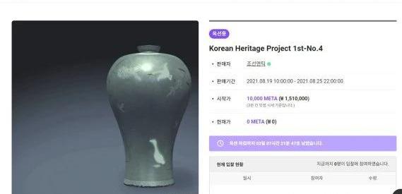 Metapie上高麗青瓷NFT出售的屏幕截圖