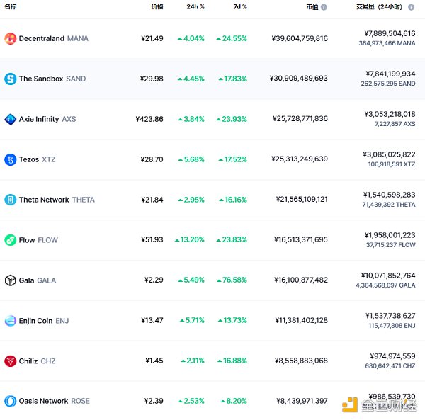 NFT總市值、市值排名前十項目 數據來源:coinmarketcap