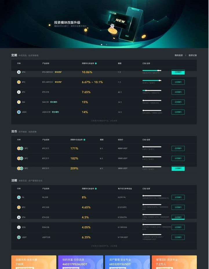 其實,不管是在傳統金融市場,還是在加密貨幣市場,保本保息、高收益且穩定的理財方式已經逐漸成為大眾理財的新風向,更多的加密行業平臺都開始朝著綜合性交易平臺方向發展,集OTC、杠桿、借貸、理財、保險等金融化產品于一體。