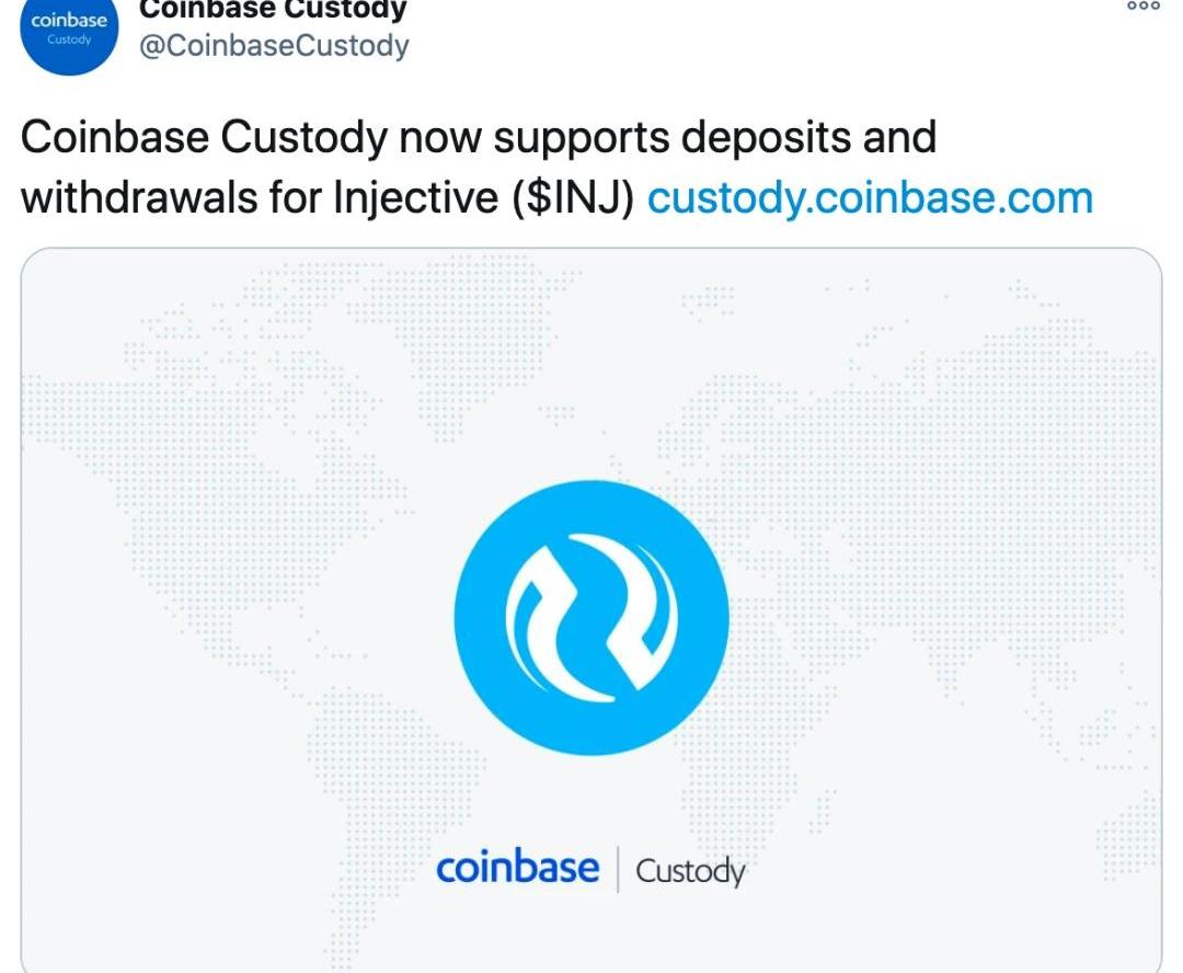 12月23日,CoinbaseCustody宣布支持對INJ的存幣與提幣服務。