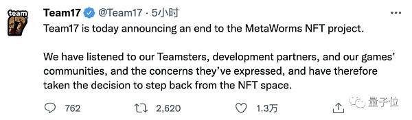 壓力之下,被譴責的Team17也終于宣布放棄NFT計劃。
