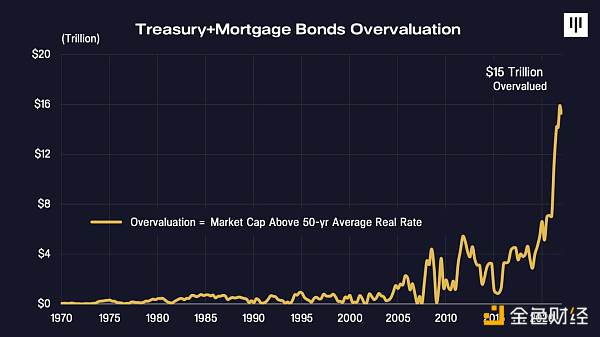 美聯儲對美國國債和抵押債券市場的操縱如此極端,以至于現在它被高估了 15 萬億美元(相對于 50 年平均實際利率)。