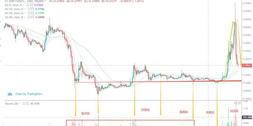 因為主力經過底部區間的換手,洗籌已經完成的成本的轉換,換成了成本大概在0.2-0.25的籌碼,所以上漲大量的換手是底部區間便宜的籌碼,有足夠的換手空間和價格空間,讓他沒有新高行情的時候一樣賺的盆滿缽滿,這也是我昨天提醒大家關于XRP不懷好意上漲的原因。