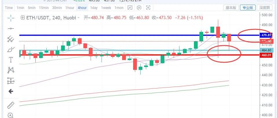 以太坊方面,行情整體上聯動大餅,因此整體上也是處于寬幅震蕩之中,那么對于這種行情我們的選擇還是以一樣的操作思路去對待即可,順勢而為,小止損博取大止盈,上方壓制取整數關口500一線,下方支撐為小時圖與四小時圖級別重合交疊區域vegas隧道雙通道支撐463一線,大區間463-500一線,而小區間方面463一線為支撐,上方480一線為壓制,短線操作區間震蕩對待,小止損博大止盈即可。需要實時指導的朋友可以加shenwy886尋求幫助