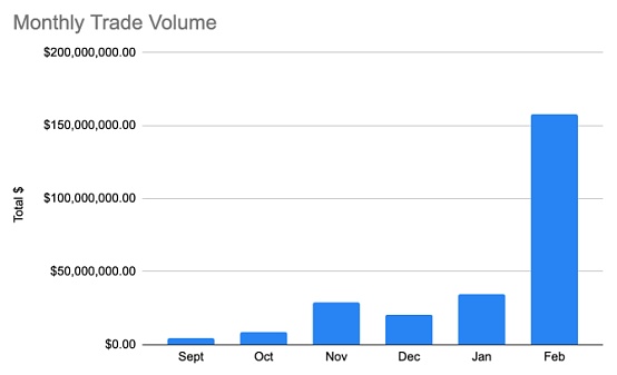 Antonio Juliano在公告中寫道:自9月以來,dYdX一直在為所有交易支付交易費用。在dYdX上,用戶簽署消息以創建訂單-用戶無需支付任何交易費用。當訂單匹配時,dYdX提交交易以執行匹配的鏈上交易。這使我們能夠提供更流暢,更快捷的交易體驗,但這也意味著dYdX產生的Gas成本與dYdX上的交易數量成正比。僅在二月份,這就花費了我們超過40,000美元。