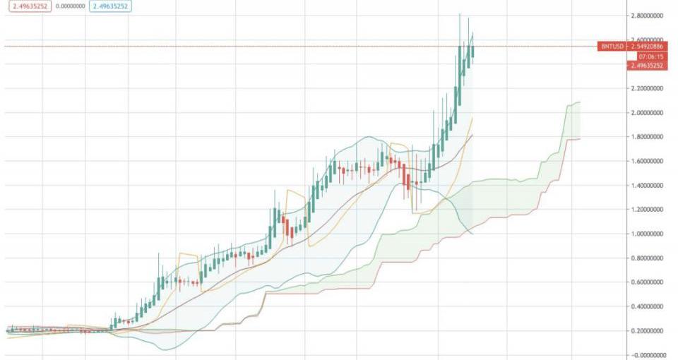 2020年開始,BNT的價格出現了暴漲。自2020年1月1日以來,BNT在221天內上漲了1087%。這見證了BNT價格從0.2美元向2.4美元放大,BNT目前的價格如下圖所示。