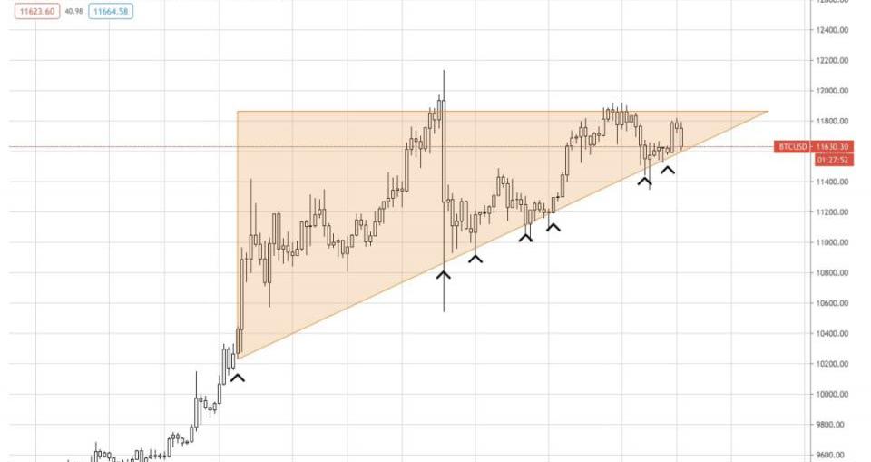 現在,BTC已經突破了橫向交易通道,并且已經達到了12000美元的阻力位,這就有了一個問題。全球最大的加密貨幣接下來的走勢會如何呢?