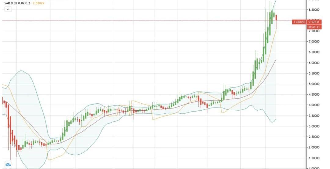 回調可能會導致LINK測試BBs的中線(紅線)。如果發生這種情況,LINK的價格將跌至6.5美元左右,這比LINK當前的價格下降了17%。