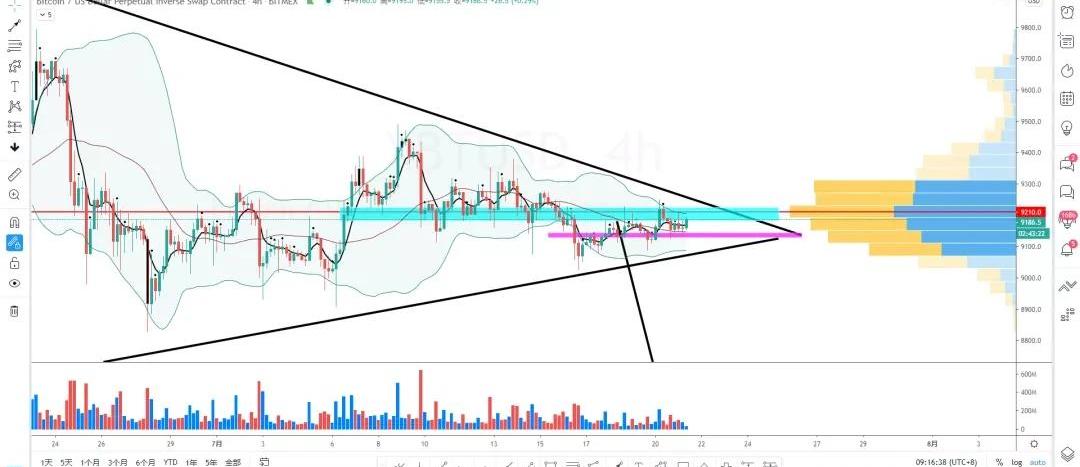 1900/1/1 0:00:002020年6月20日周六農歷四月廿九 易天說我們再來看一下大餅昨日的行情波動,易天老師昨天早間給出了一個9400-9450進空和9200附近進多的策略.