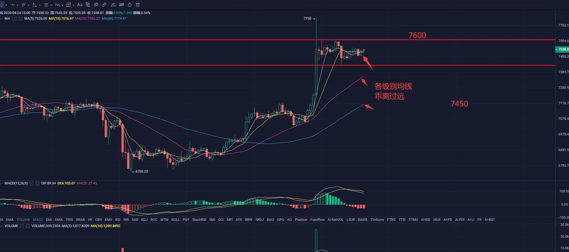 昨日上漲過多,所以日內需要震蕩消化,而且從K線的角度上離均線過遠,需要震蕩甚至回調等待均線上迎。有印象的小伙伴或許知道,7800一直是市場比較重要的一個心理位置,特別是去年十一二月份時期,所以若是行情踏上7800,對短期內的市場情緒有較大的激勵作用。