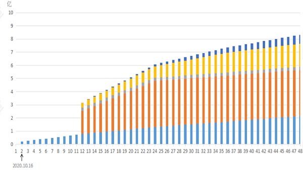 IMX 最初代幣總量2000萬枚,2021年10月進行1比100拆分,目前總量20億,具體分配:1.生態發展(51.74%)團隊分配了 6000 萬枚用于空投,其中 1000 萬枚分配給 2021 年 7 月 22 日之前參與的早期用戶,4000 萬枚分配給 9 月 21 日前參與的早期用戶,剩余1000 萬枚用于其他活動。剩余部分用于用戶獎勵、開發者撥款、市場運營等。不同用途鎖定時間不同,在6-24 個月之間,團隊會根據實際情況進行調整。2.項目發展(25%)鎖定1年,后面3年每28天釋放一次。3.私募(14.26%)鎖定一年,但每 28 天增加一部分代幣進入等待期,滿1 年后等待期代幣解鎖,剩余代幣 每 28 天釋放一次。4.公募(5%)5.基金會(4%)