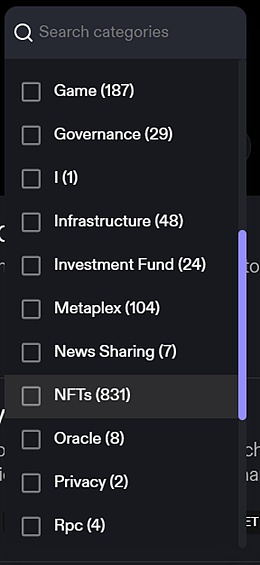 目前Deso上的項目共155個,其中大部分是創作者工具,開發者工具,投資者工具等。雖然生態較為單薄,但是在2021年整體生態發展較快。并且2021年10月Deso推出5000萬美元生態激勵基金,旨在發展公鏈生態,但相對其他公鏈,該生態激勵基金數額較小。目前暫無開發者和錢包活躍地址相關數據。