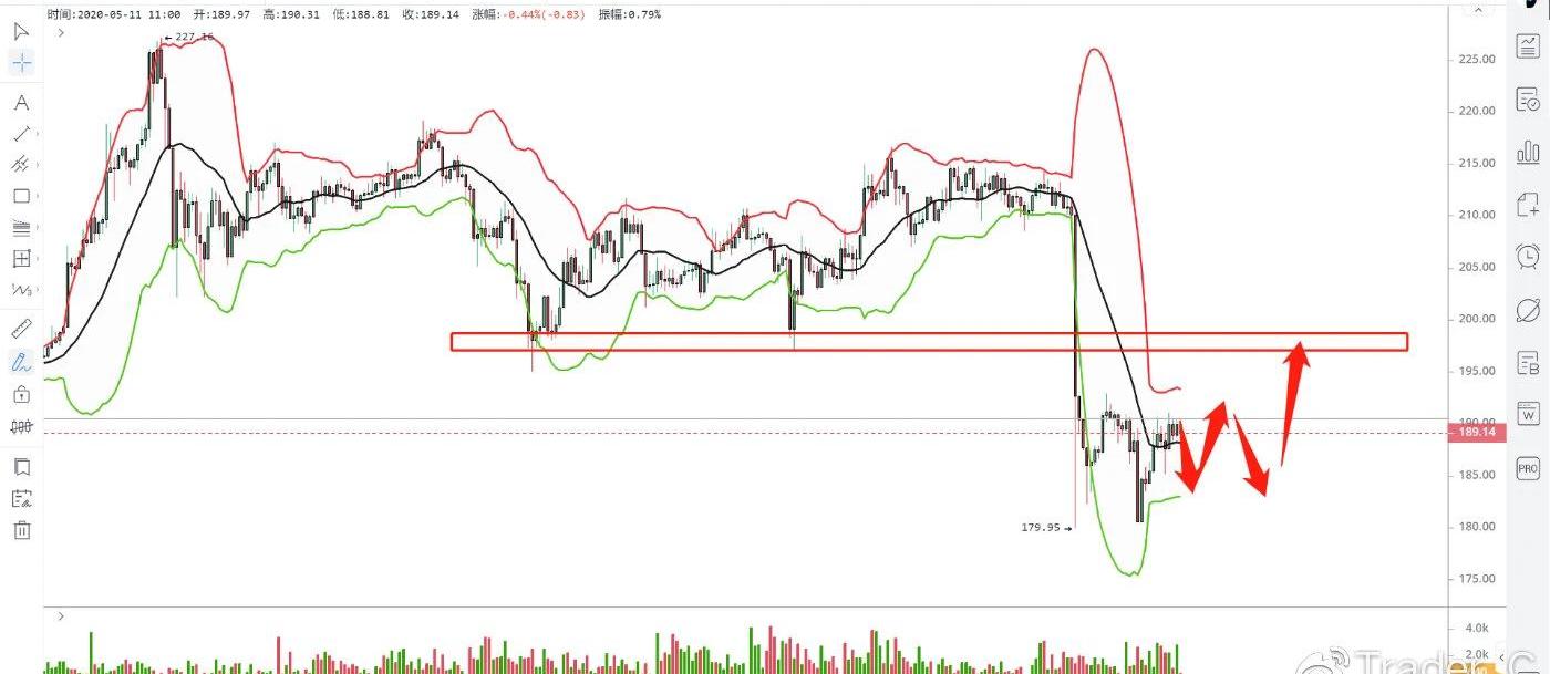 下殺之后的震蕩收斂走勢,基本頂部形態已形成,關鍵壓力196.8,反彈到位就是空,短線可以在191.6-181.5之間高拋低吸獲利操作即可