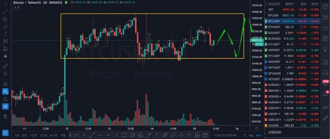 BTC昨日開盤如預期延續13號的高位看跌吞沒動能,價格下探最低10114,給到短線多單機會后反抽,不破前高10508,目前收高位孕線,今日需要關注10373和10119兩個關鍵位置的突破情況,突破哪邊,就留意哪一邊的小級別多空機會