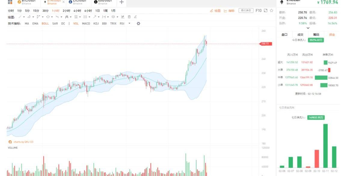 據QKL123數據統計,2020年02月12日16時,8BTCCI大盤指數報16100.48點,24小時漲跌為+8.14%,反映大盤快速上漲;總成交額10822.00億元,24小時變化+14.38%,市場活躍度明顯升高。比特幣強弱指數報80.76點,24小時漲跌-4.58%,比特幣在整個市場的相對表現明顯變弱;Alternative情緒指數為61,市場情緒表現為貪婪。
