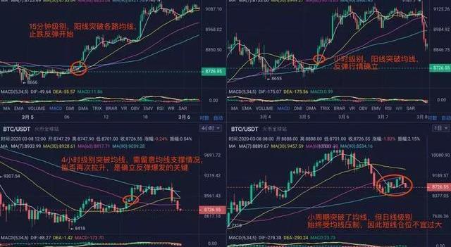 即按照短周期到長周期的方法,先看15分鐘MA60均線,站上后看1小時MA60均線,4小時MA60均線,日線級別的MA60均線,以此類推,幣價處于低位時站穩均線后,且MACD出現金叉,是不錯的進場點位,倉位可以逐步加大。