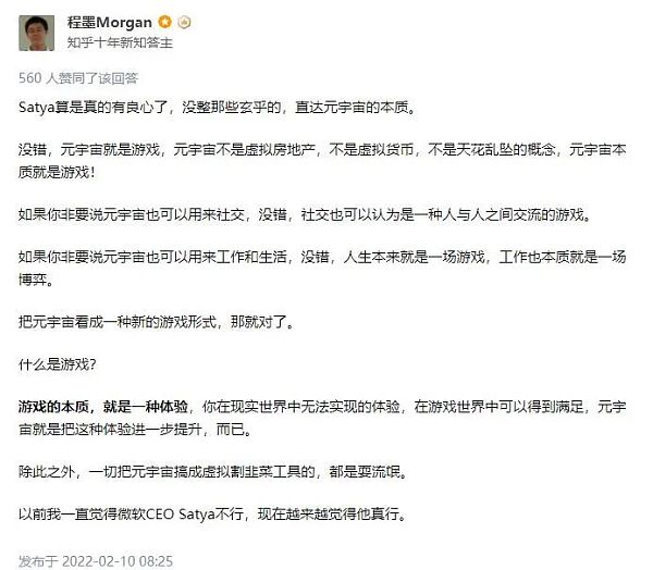 近日,微軟CEO薩提亞·納德拉(Satya Nadella)在接受采訪時就認為,“元宇宙本質上就是游戲,它能夠將人物、地點、事物放入物理引擎中,然后相互關聯”。納德拉的言論很快在知乎掀起了討論,一度登上話題熱搜榜第9。