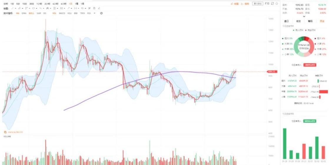 金色財經合約行情分析 | BTC下午放量上漲,市場情緒有所激活:據火幣BTC永續合約行情顯示,截至今日18:00(GMT+8),BTC價格暫報9315美元(+1.38%),20:00(GMT+8)結算資金費率為0.010000%。