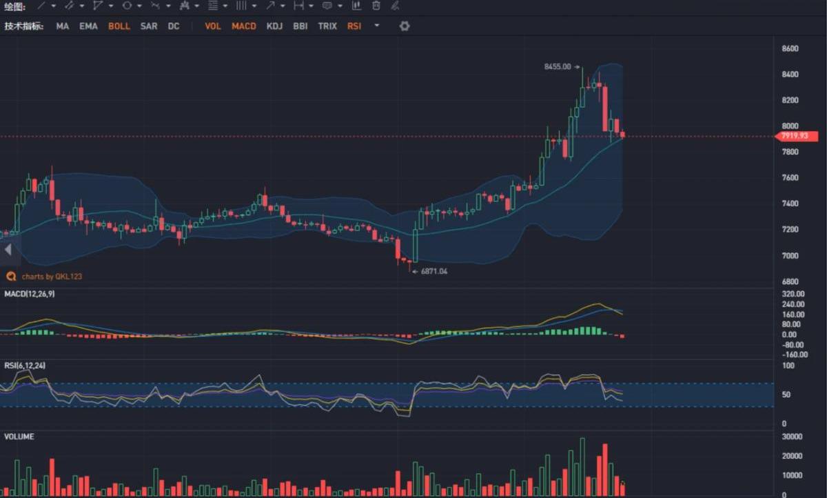 近日凌晨,BTC從高位回落,短時有比較明顯的放量,目前回落至8000美元左右,短時區間震蕩的可能性較大。受中東局勢的影響開始減弱,近日走法是否會出現明顯的打回原形,或走出減半行情,短時不確定性較大,需要繼續觀察這次的回落程度:是否在7800美元獲得較強支撐。