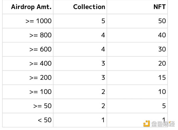 當然,X2Y2 也針對用戶賬戶可認領的空投額度設置了認領條件,比如,可認領超過 1000 枚代幣空投的用戶需要至少在平臺上架 5 個系列以上的至少 50 個 NFT。可以看出,從 NFT 質押獎勵還是空投規則看,X2Y2 都有在盡可能地激勵用戶去上架更多的 NFT,以增加作為一個 NFT 平臺的可交易性。