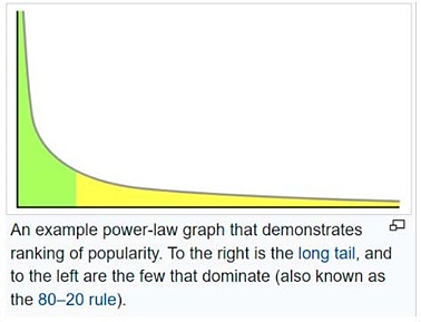 NFT很可能遵循一個冪律,即最好的NFT或NFT集合的回報率高過投資組合的其他部分,然后是相當多的強者和平庸者(然后是大量的0,即所謂的 "長尾")。