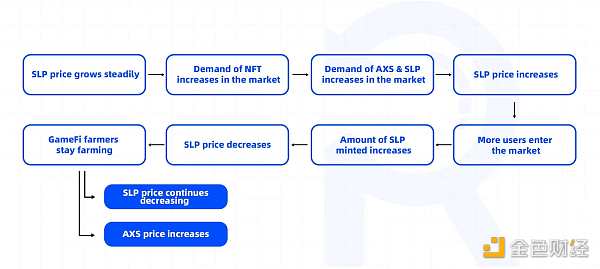 不會有永遠上漲的資產,除非其新的需求可以源源不斷吸納前面的供應。現實情況為,燃燒AXS&SLP來產出Axie NFT,質押NFT又產出SLP,而SLP本身則沒有太多降低通脹的方式,最終SLP承擔了三種資產的全部拋壓。