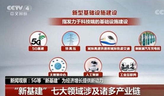 而在中央電視臺中文國際頻道的定義中,新型基礎設施建設是指發力于科技端的基礎設施建設,主要包含 5G 基建、特高壓、城際高速鐵路和城際軌道交通、新能源汽車充電樁、大數據中心、人工智能、工業互聯網等七大領域,涉及到通信、電力、交通、數字等多個社會民生重點行業。