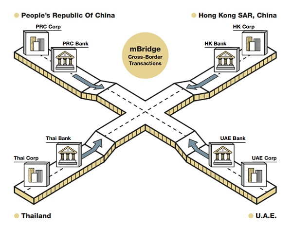 這個項目在2019年是香港金管局與泰國央行研究CBDC時探索的跨境支付項目,名為Inthanon-LionRock。在發展到第三階段時,中國人民銀行及阿聯酋央行加入,變成了四個參與方,同時國際清算銀行香港創新中心也支持了該項目,于是項目正式更名為“多種央行數字貨幣跨境網絡”(m-CBDC Bridge),也就是我們常說的多邊央行數字貨幣橋。