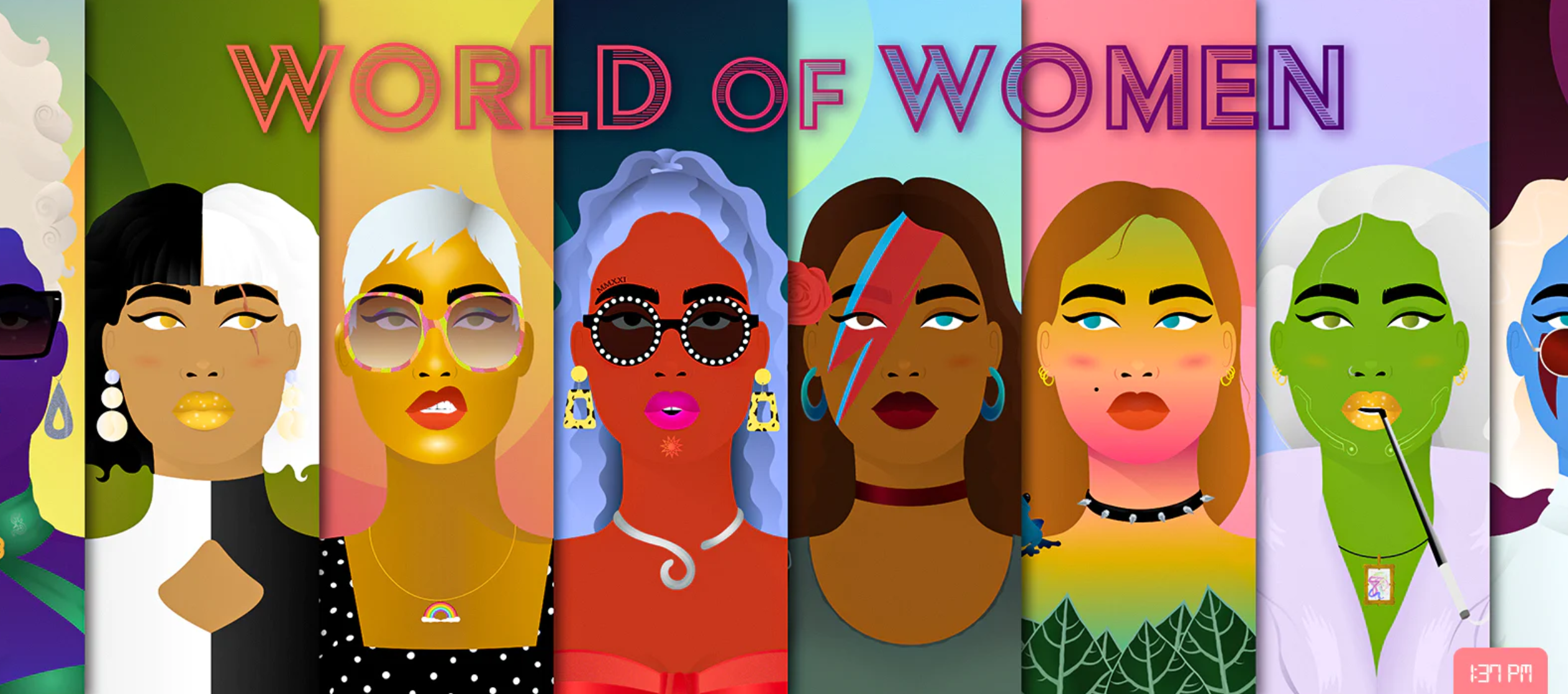 「World of Women 是一個彰顯所有人的獨特性、包容性和平等機會的社區。由 10,000 件展現多元化和強大女性的藝術品首創的收藏品共同組成。」