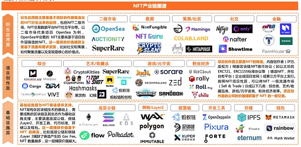 1、基礎設施層:包括Layer1公鏈和Layer2側鏈;為NFT提供技術支持。