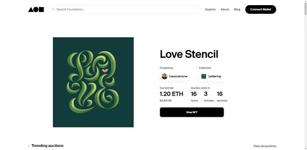 Foundation它允許未知和流行的藝術家加入該平臺。它建立在以太坊區塊鏈,其愿景是通過連接收藏家和創作者來推廣藝術。