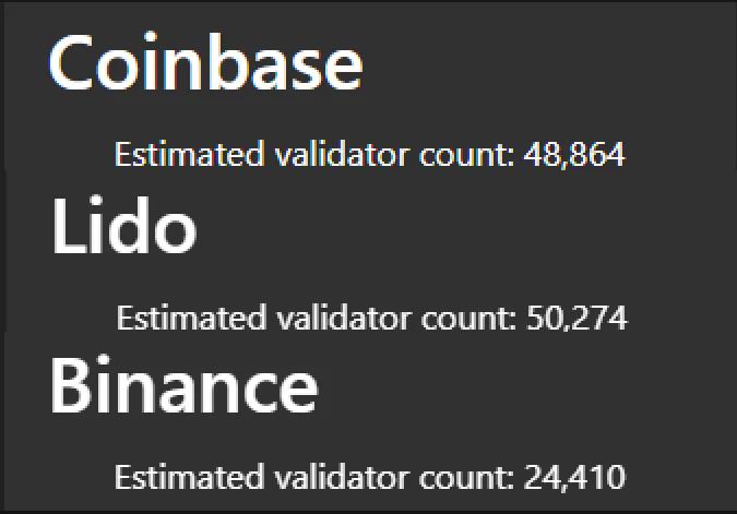 Coinbase、Lido 和 Binance 中的預計驗證者計數。圖源:https://pools.invis.cloud/