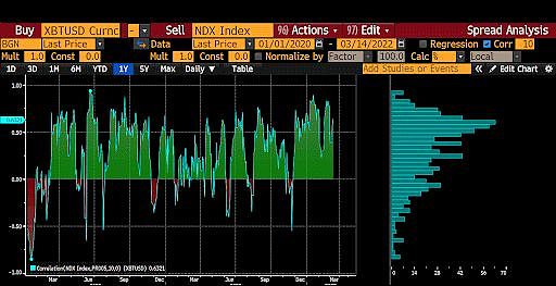上圖是比特幣與納斯達克 100 指數之間 10 天相關性的圖表(完全相關資產的相關性為 +1,完全負相關的資產相關性為 -1)。正如你所看到的,比特幣目前與大型科技風險資產密切相關。如果我們相信名義利率會走高,并導致股市熊市和經濟衰退,那么比特幣將跟隨大型科技公司進入廁所。打破這種相關性的唯一方法,是轉變比特幣價值的敘述。面對名義利率上升和全球滯脹,黃金的牛市將打破這種關系。
