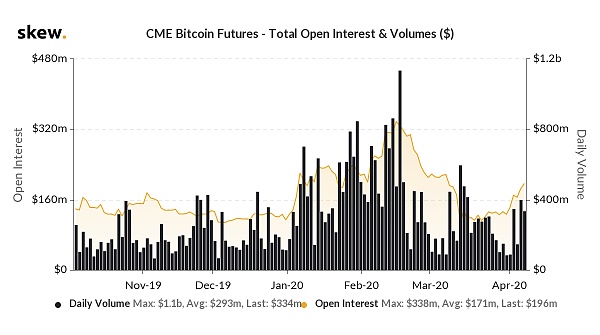 同時,根據Bakkt平臺上的數據顯示,Bakkt實物結算比特幣期貨的交易量在持續增長。4月7日,該交易額達到1693萬美元,為近一個月來第二高,未平倉合約增至612萬美元。