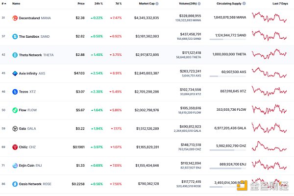 NFT總市值、市值排名前十項目 數據來源:Coinmarketcap