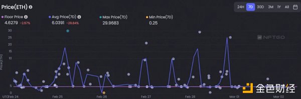根據NFTGo數據,過去30天中,NFT市場交易量呈波動下滑趨勢。在下跌期間階段性小幅度回調多見于新聞向的利好消息,比如Yuga Labs的收購事件等。