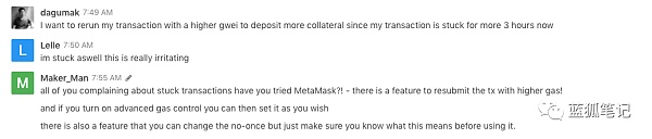 清算價格不再緊密跟蹤ETH的市場價格,它們開始一直跌啊跌,沒有任何支撐。不再只是償還借款人的抵押品減去少量罰金的價值,很多幸運的清算人只是帶著免費的ETH離開,因為他們以0美元出價贏得了競拍,這導致借款人一無所獲,除了他們之前提取的DAI。更糟的是,這些沉重的折扣清算給Maker的資產負債表留下了漏洞。它擁有的ETH抵押資產低于其挖出的需要完全支撐的DAI。對于被這種方式清算的人來說,很不幸運,恐慌開始通過社區留言板開啟。