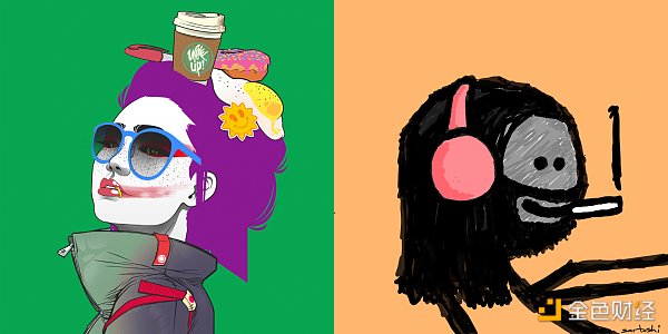可能大多數人對美認知標準是相似的,如下面圖中,多數人認為左邊的圖明顯美過右邊的圖,但實際市場價值右邊的價格是左邊圖的40倍。但在NFT領域,一件NFT是否符合大眾審美的標準不是關鍵因素,更為關鍵的是NFT背后被附著的社交價值、情感價值、資產價值。類似中國的題字文化,字本身是否運筆工整、俊拔秀逸不重要,關鍵是題字人的身份和社會影響力。你的認為不重要,大家的認為才重要,對于FT共識即價值,而對于NFT共情即價值,我們需要讓NFT有更多的共情因素支撐。