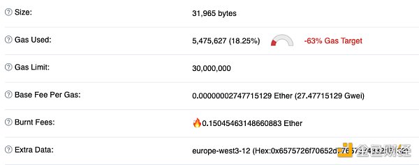 這個塊最后打包了31965字節數據,gas單價在27gwei左右。