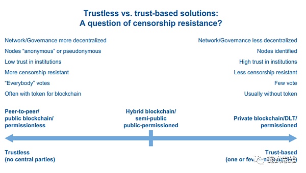 身份主權管理(SSI)社區的DID方法實現可以選擇區塊鏈、DLTs或者P2P。區塊鏈和DLTs經過區塊鏈的炒作周期已經失去了大部分意義,當下應該摒棄標簽,關注如何通過各種技術實現去中心化,應該充當一個“信仰者”而不是“擁護者”或“堅定的支持者”。追求去中心化是一個過程,一種狀態,而不應該是迷信某個項目、技術、創始人。
