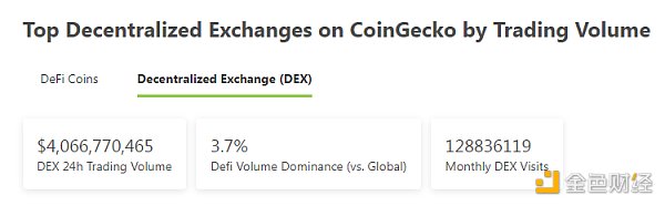 2.過去24小時去中心化交易所的交易量:406.67億美元