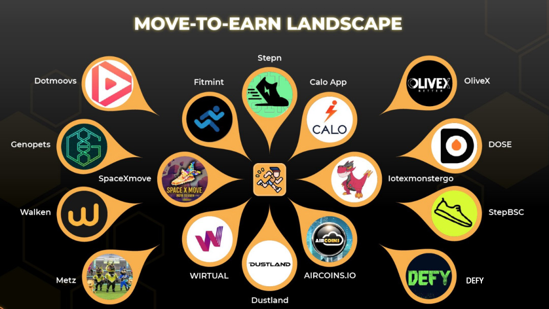 在 M2 E 游戲中,玩家以 Move 為主要途徑,同時也包含各種運動類型,通過運動的方式來賺取收益。M2 E 將玩賺與健康的生活方式和社交聯系起來,更容易傳播和裂變。主要的代表有:STEPN、OliveX、GENO、WIRTUAL 等。